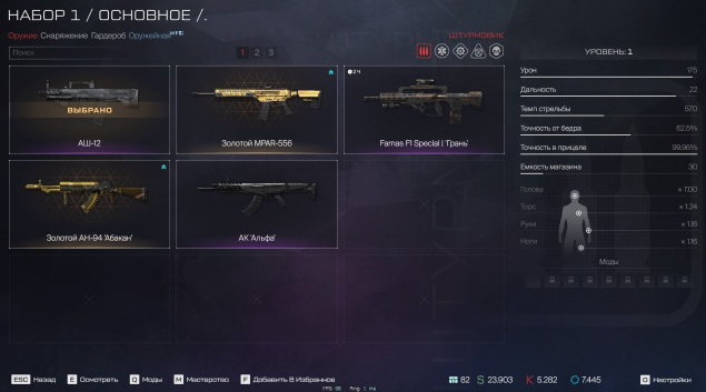 Краткое описание: АШ-12, 7 золотых пух, 5282 кредита, MPAR-556, McMillan CS5, ППШ-41 Modern, АН-94 Абакан и тд!