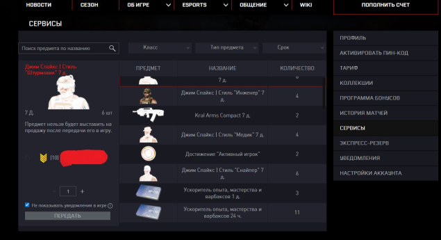 В сервисах, есть снаряга авангард на время, куча оружия на время, внешки и ускоритель опыта, мастерства и баксов!