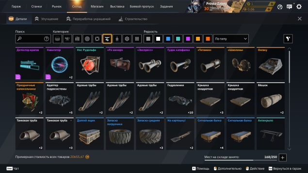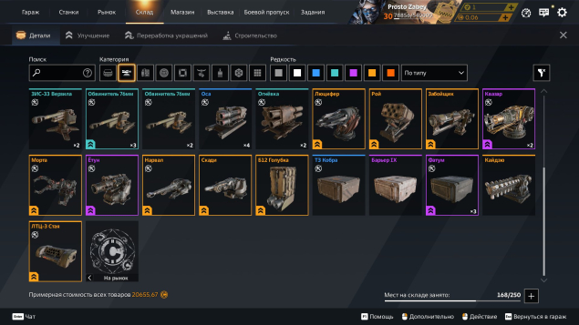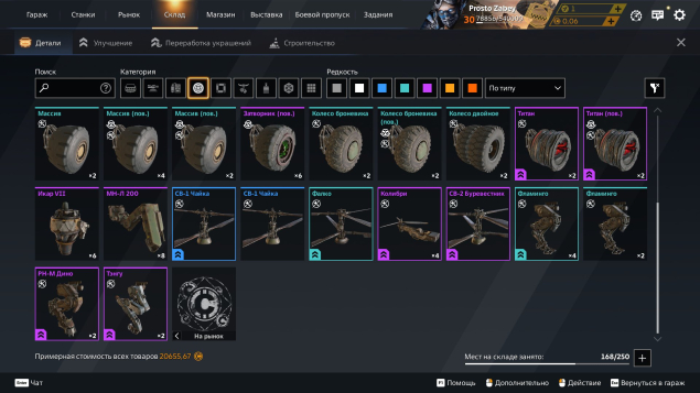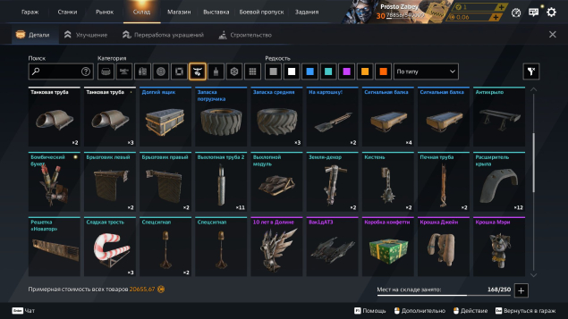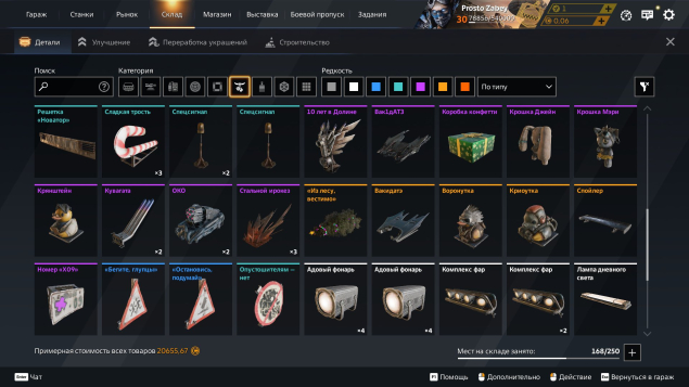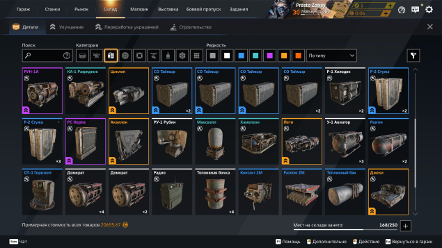 В аккаунте в доначено около 10к рублей есть множество деталей