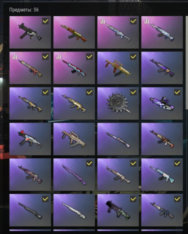 ➖💜 Скины, а так же имеется 8 чертежей для улучшения оружия.