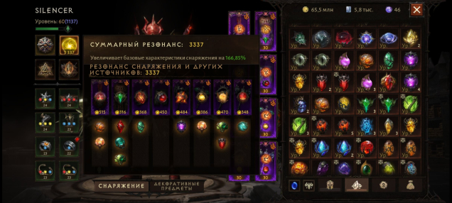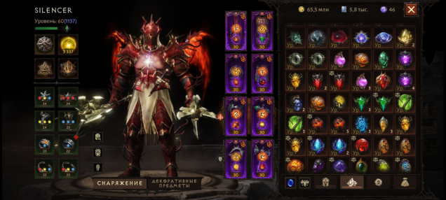 Много косметики почти на все классы, прокачены сущности, много корма, глифов, камней.