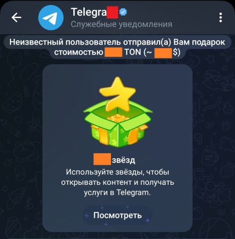 ⌛️ Иногда, может возьникнуть небольшая задержка из-за загруженности телеграмма и звезды приходят не сразу после отправки транзакции.