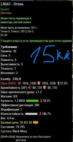 Подробное описание: точное оружие с отличной кучностью, шотает.