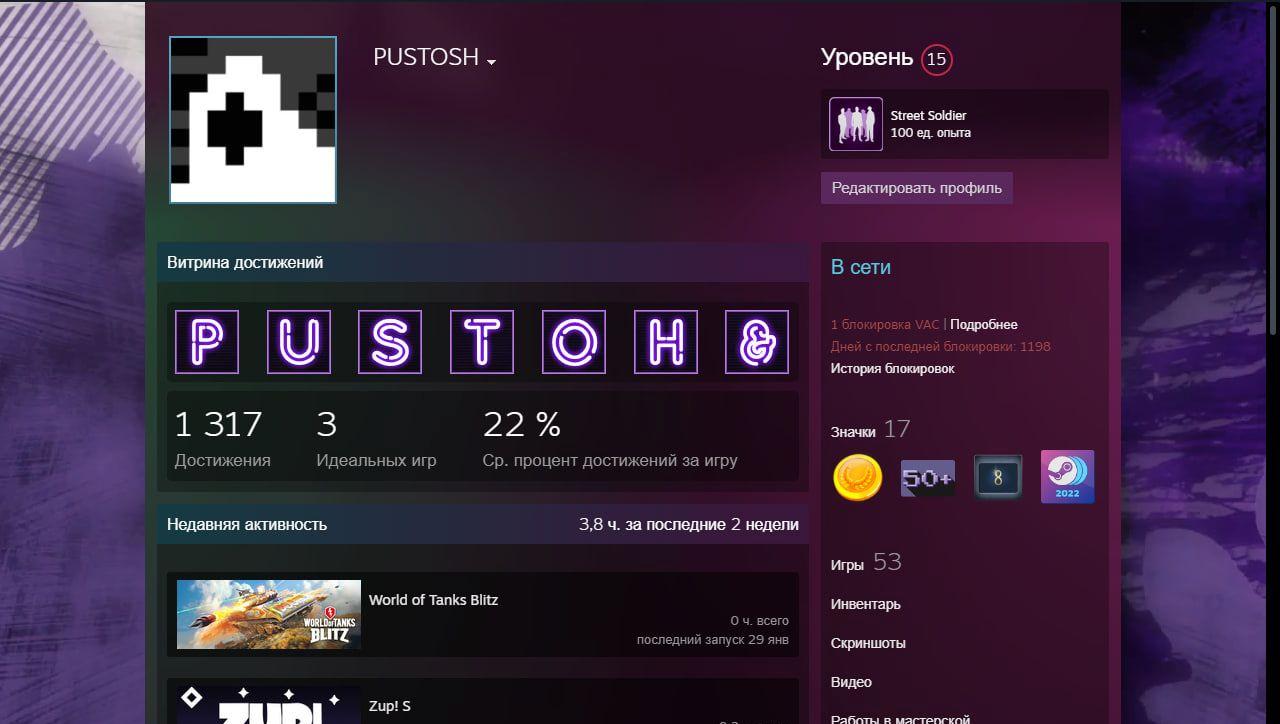 Уровень Steam: 15