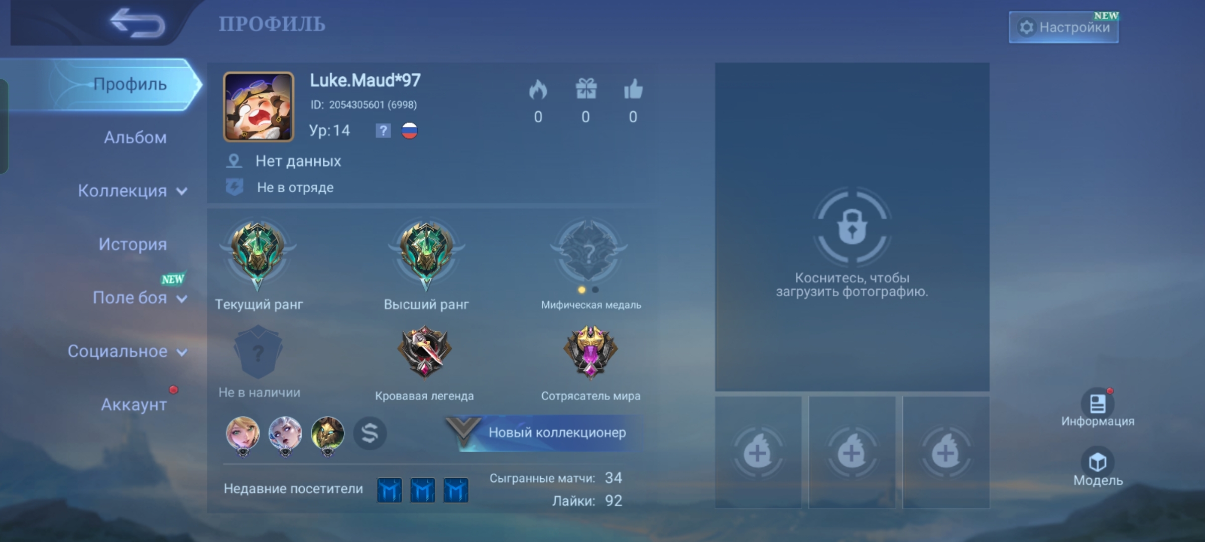 Аккаунт MLBB ранга EPIC;