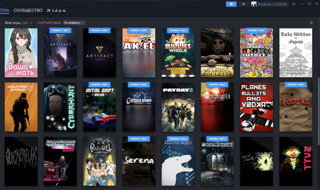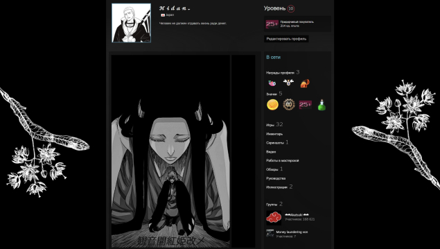 🌟32 купленных игр, красиво оформлен профиль, 10 уровень стима(+1 витрина).