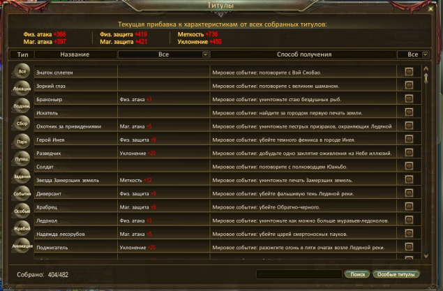 Сделано много титулов (404 шт.) Дает +366 физ; +397 маг
