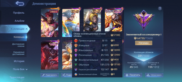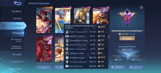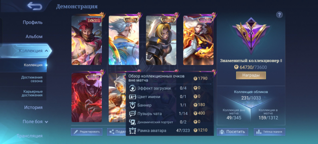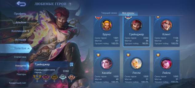 ✅Игры ТОЛЬКО НА АДК, лишь пару штук в лесу. Аккаунт заточен под адк, но подойдет и леснику. В основном скины, эмблемы и герои на адк и лес. Для адк сделана красивая стата по киличеству игр и они же в мейнах.