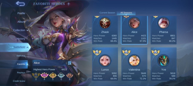 LuckyBox: Мия, Алиса, Алукард, Карина, Акай, Франко, Эйдора, Хаябуса, Фрейя, Кагура, Чу, Джонсон, Эстес, Керри, Гатоткача, Одетта, Ланселот, Заск, Мартис, Уранус, Чан'э, Кайя, Селена, Клауд, Леоморд, Люнокс, Кимми, Гвиневра