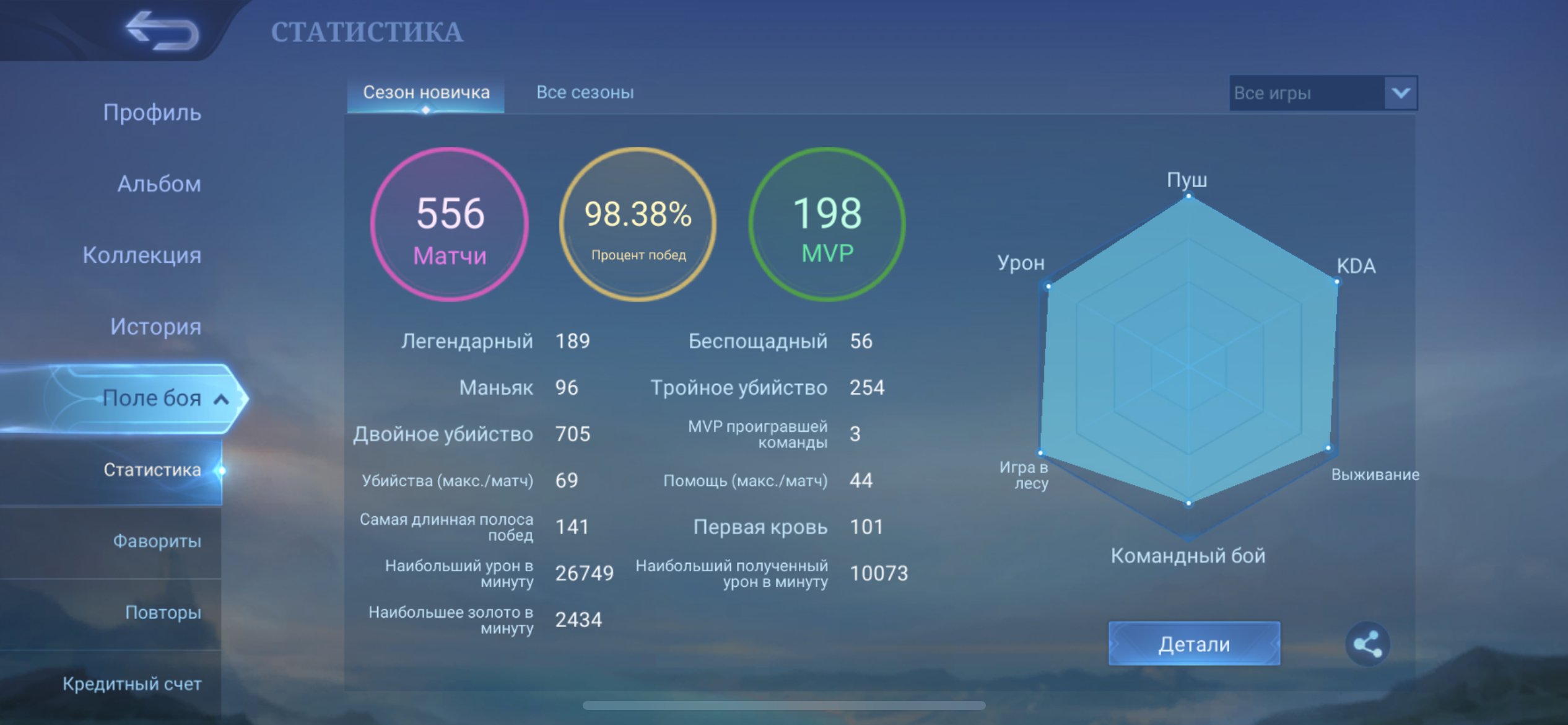 Процент побед: 99