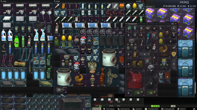 В схроне большое количество контейнеров и вещей для квестов и рейдов, можно не переживать за ресурсы и ходить в рейды в хорошей экипировке на постоянной основе не переживая за потери.
