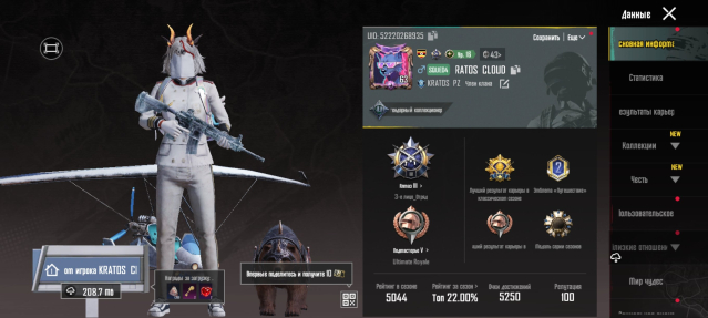Id 52220268935, Продажа, 68 уровень, Ранг: Ас, 70+ мифик скинов, 20+ прокачиваемых оружий, 5+ килл чатов, Нет спорт каров