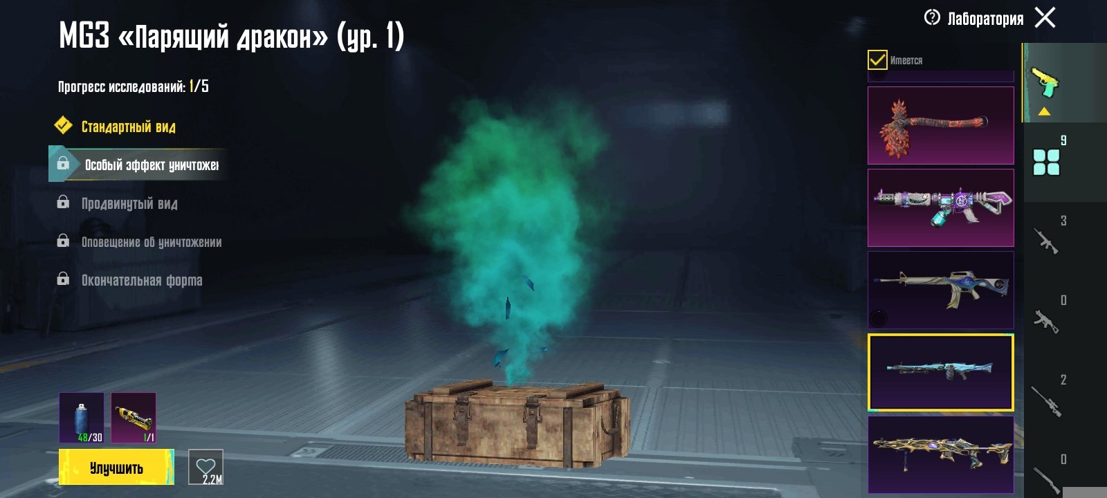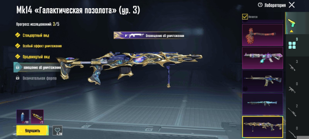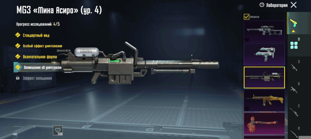 Прокачиваемые оружия: 1-9