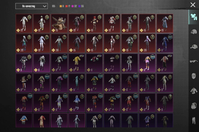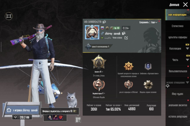 44 уровень колекции. 2 уазика, 1 дача, 1 мотоцикл, 2 багги, 1 лодка, 3 автобуса, 1 мотопланер. 4 килл чат молика, 1 килл чат хаешка, ховерборд в виде зеленых крыльев, мифический парашут. 9 разных цветных самолетов,10+ титулов.В ак было влито около 13к