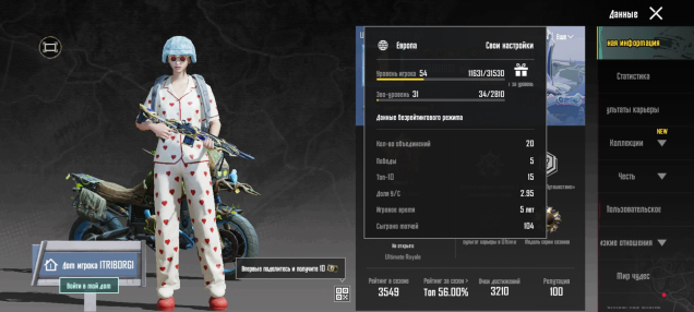 Подробное описание: 🏆54лвл, 29лвл колекции, мифик скины с бп, юбка олд мифик, почьти один мк позолото можно вкачать до 3 лвла, на аккаунте имеется в метро 30лвл+много вешей и балик+дубликат нож бабочки это +1500рк аккаунту, куплен бп пройден до 77+можно юси забрать 🏆