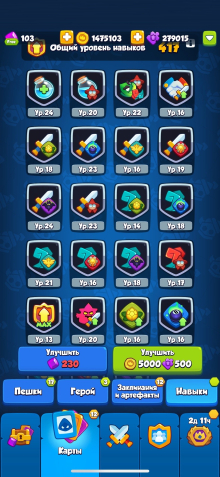 Достаточно артефактов и навыков, есть куда расти.