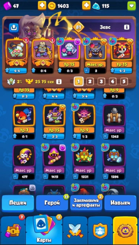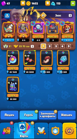 Краткое описание: 80тый Зевс Очки Фулл колода Френки Древо Бард Джин Банши Куча перерождений Лоу прайс***