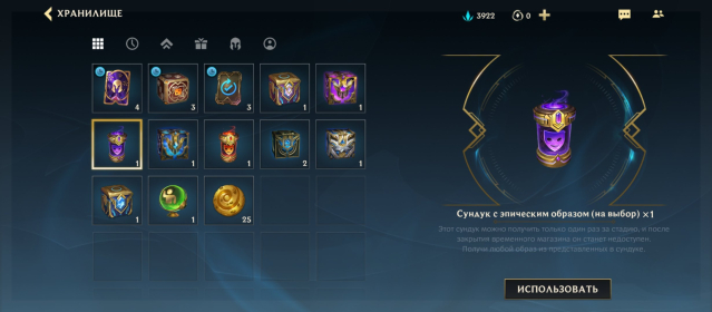 Так же будет доступен ещё 1 сундук с эпик скином на выбор, всего сундуков: