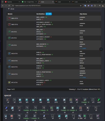 | Orcus (16laser dmg; 20 hp; 11shield +2speed +3penetration; 11penetration+1dmg OR 4ncp_dmg +12laser hitchance),
