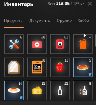 Подробное описание: Ремок… бронепластин… аптечек… патроны… оружие… инструментов… канистр… карточек выхода… хватает! Деталей много на машины, также есть машины на других серверах