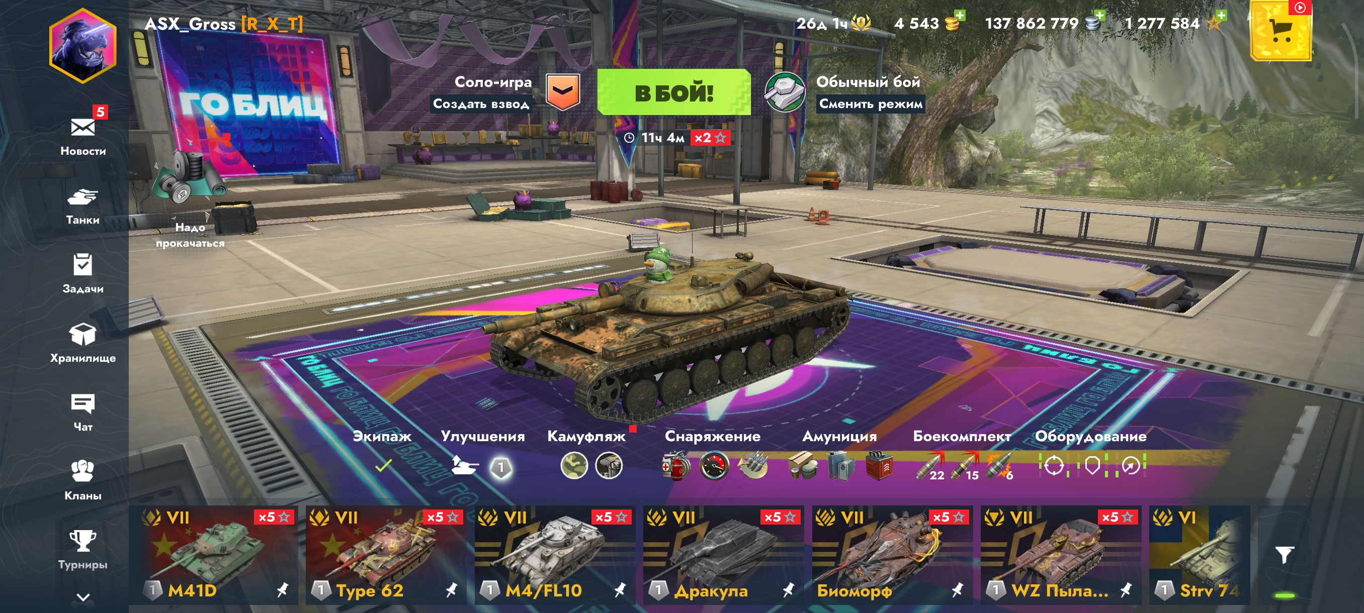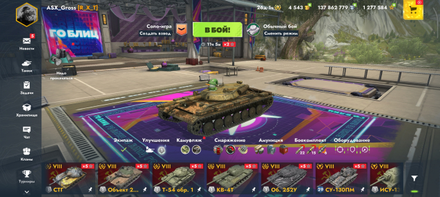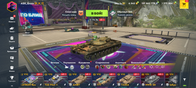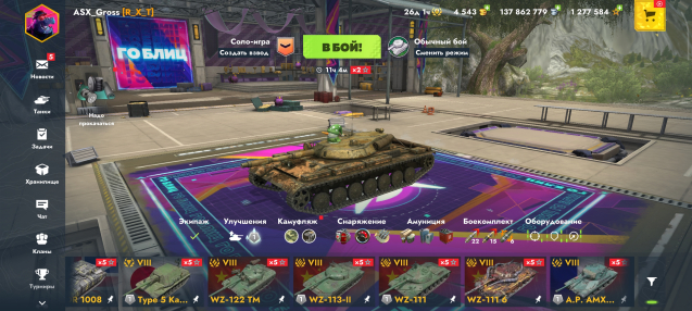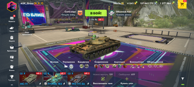 Аккаун блиц, есть множество танков и легендарных скинов на них(почти на все коллекционные на некоторых даже по несколько) всё видно на скринах
