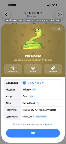 Тип подарка: ЗмеяТип предложения: Продажа