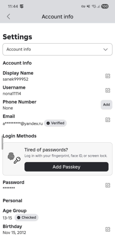 Аккаунту 6 лет; возрастная группа 13-15 лет; Почта привязана, но желательно сменить, если надо будет подтвердить что нибудь во время смены почты, я подтвержу; Возраст подтвержден, паспорт тоже, но голосового чата нету, т.к. регион Россия, чат тоже заблокирован; Не донатный.
