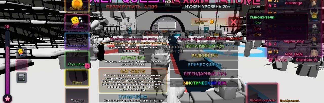 3. Ink game — имеется мифичечкая сила, а именно бог молний, 15 уровень