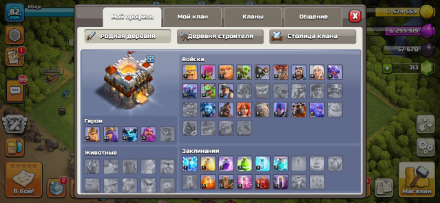 Уровень Ратуши: 11Краткое описание: ПЕРЕПРИВЯЗКА💎82 LVL💎11 ТХ💎5 РАБОВ💎ГЕРОИ 41/40/21/3💎СКРИНЫ В ОПИСАНИИ💎