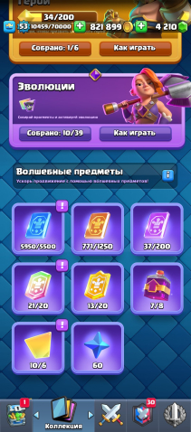 Краткое описание: 🔥10 EVO🩸121/121 Карт🔥3 Башни🩸821к Голды🔥54 Эмодзи🩸8 Чемпионов🔥9540 Кубков🩸 4210 Гемов🔥1 Макс