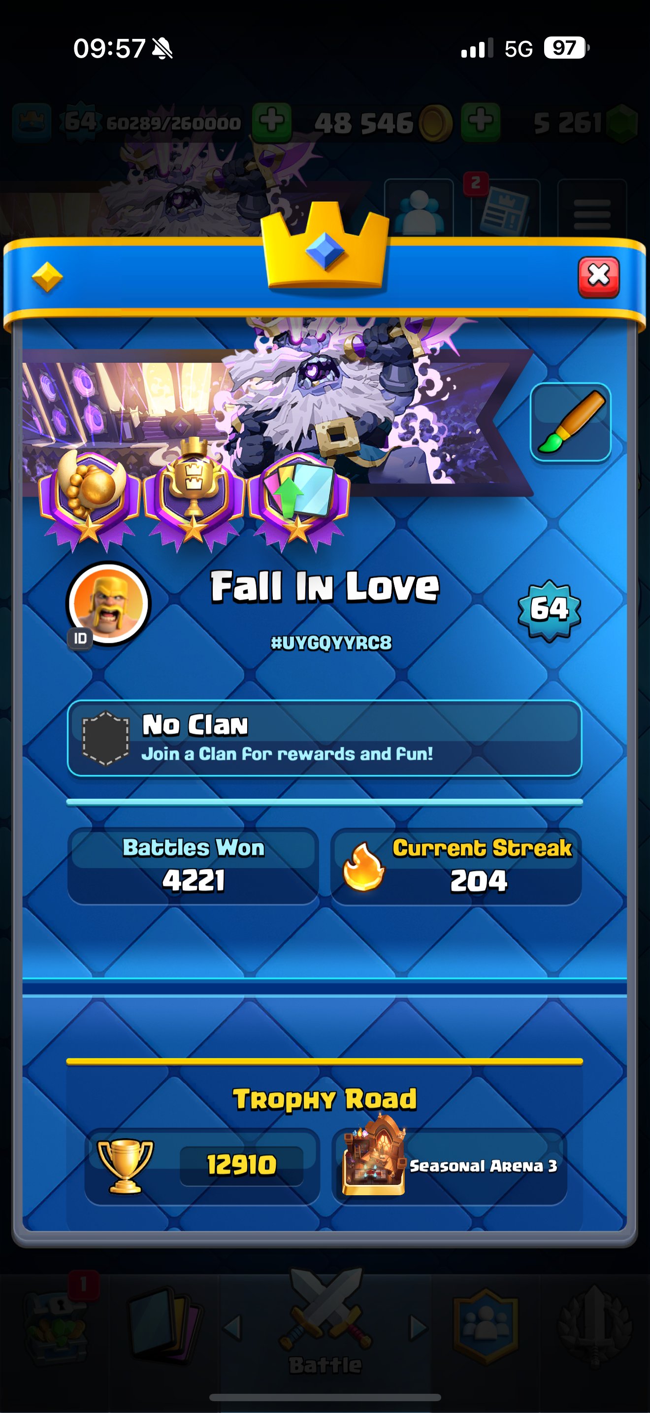 Краткое описание: 🔥CR454 ❤️ 10000 🏆 LV64 WITH CYCLE DECK, 5K GEM | 23 EVO | 1 CARD LV16, 26 LV15, 59 LV14❤️