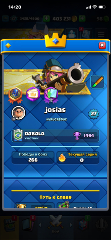 Краткое описание: ⬛🏆5060 КУБКОВ🏆⬛🥊15 АРЕНА🥊⬛🃏101 КАРТА🃏⬛📶27 УРОВЕНЬ📶⬛💫13 ЛЕГ💫⬛📦Быстрая ВЫДАЧА📦⬛📷СО СКРИНАМИ📷⬛