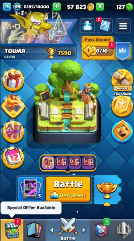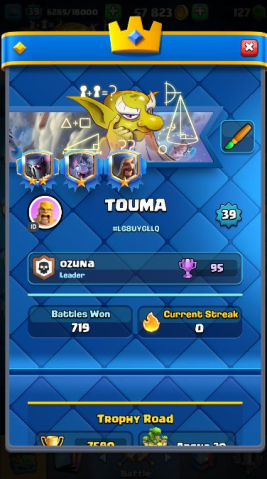Краткое описание: 39 LVL | 7590 Trophy 🎯 3 EVO | 113 Карт | 1*15 Уровня | 2*14 Уровня 🎯 16 Emotes | 3 Skin 🎯 ТОРГ