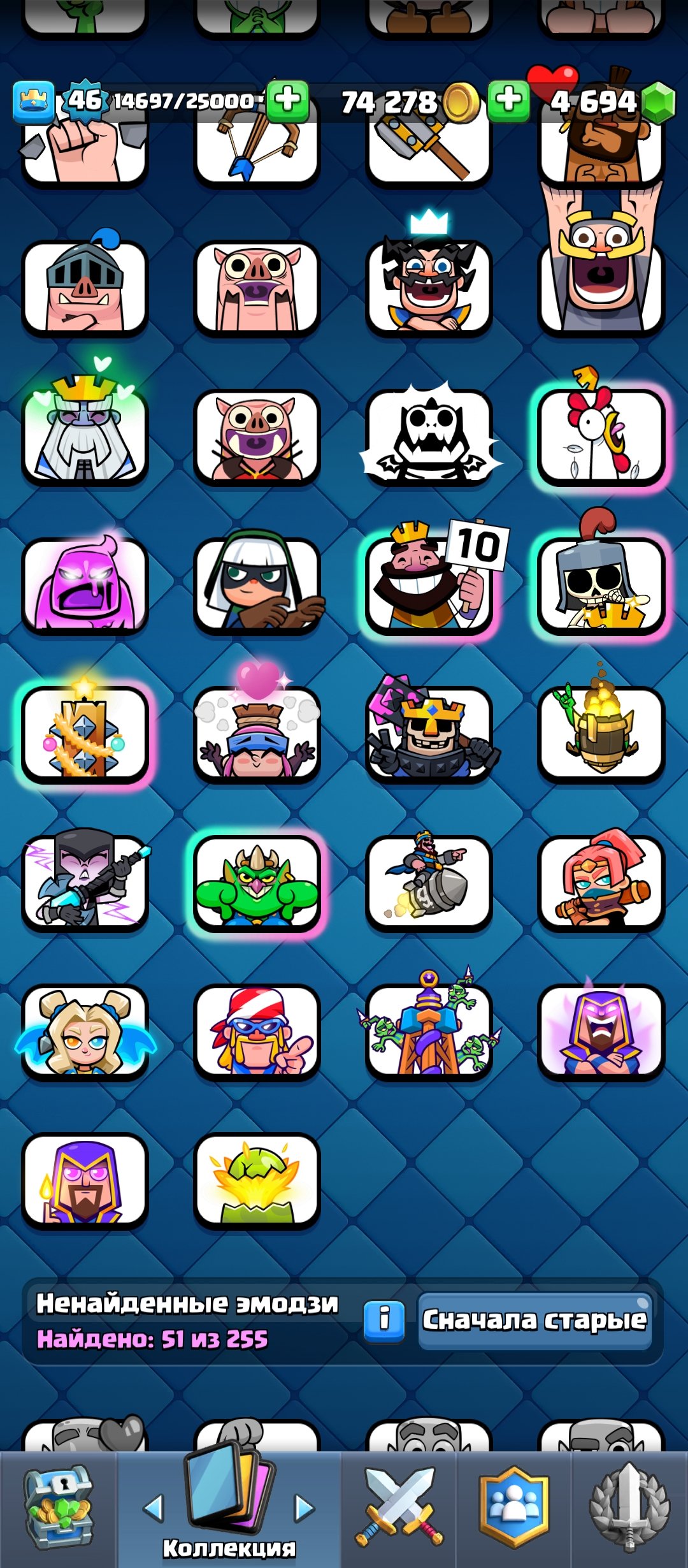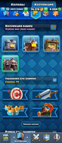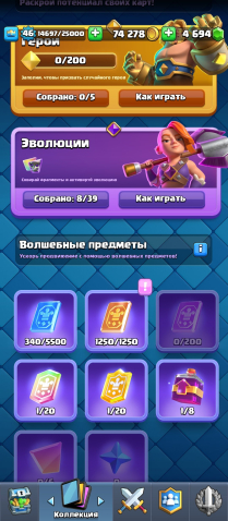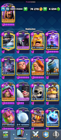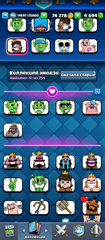 Краткое описание: 💙8 ЭВО💙46 УРОВЕНЬ⭐4694 ГЕМОВ💎3 СКИНА НА БАШНЮ❤️44 ЭМОДЖИ🔷43 УКРАШЕНИЯ🔷50 РАМОК⭐