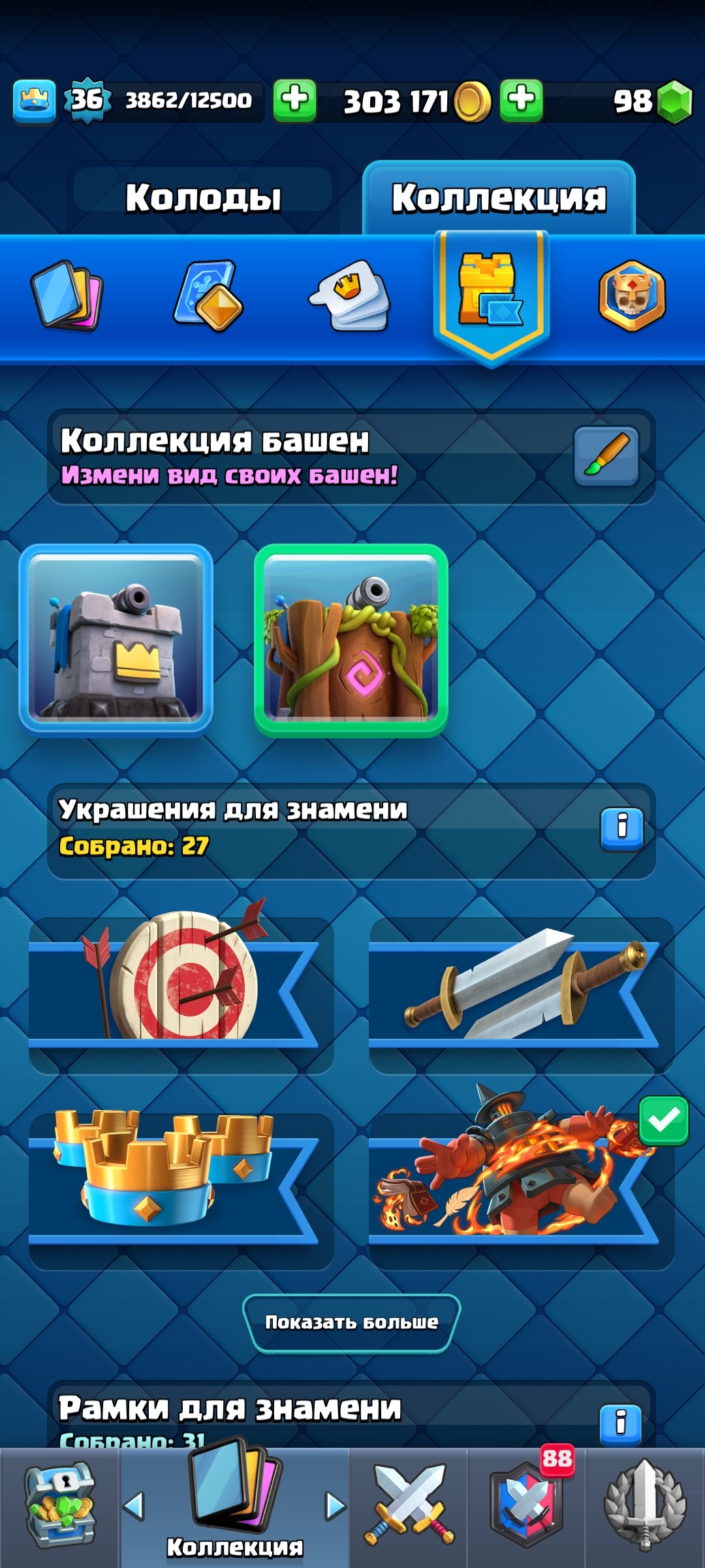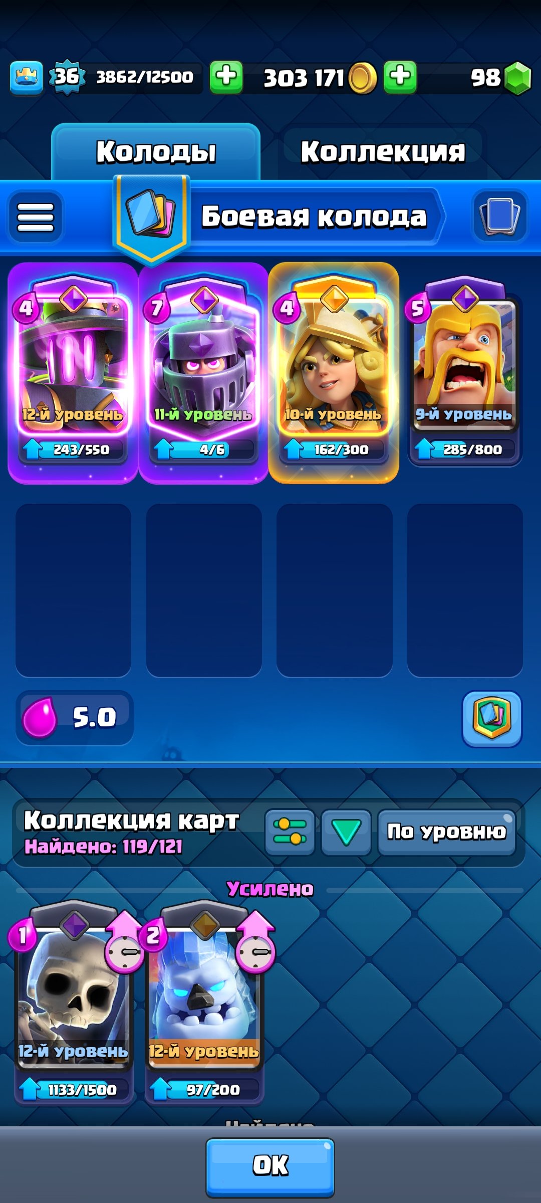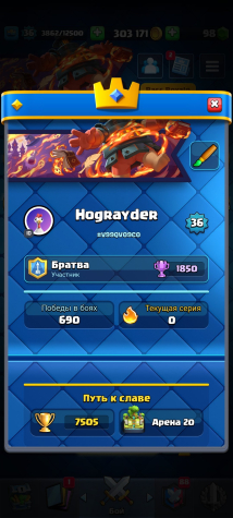Краткое описание: 😻Быстрая выдача😻🩻7505 кубков🩻🫦3 эво🫦🤌303171 золота🤌🧌98 гемов🧌