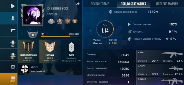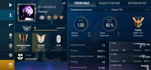 Звание: Gold lVКраткое описание: 💥🟥MEDAL «VETERAN 2020» SILVER🟥🥶1610+ Часов🥶🏅6 OLD Медалей🏅🛑ОЛД БРЕЛКИ🛑 💛БЫЛ МАСТЕР💛ID:💀28698900💀