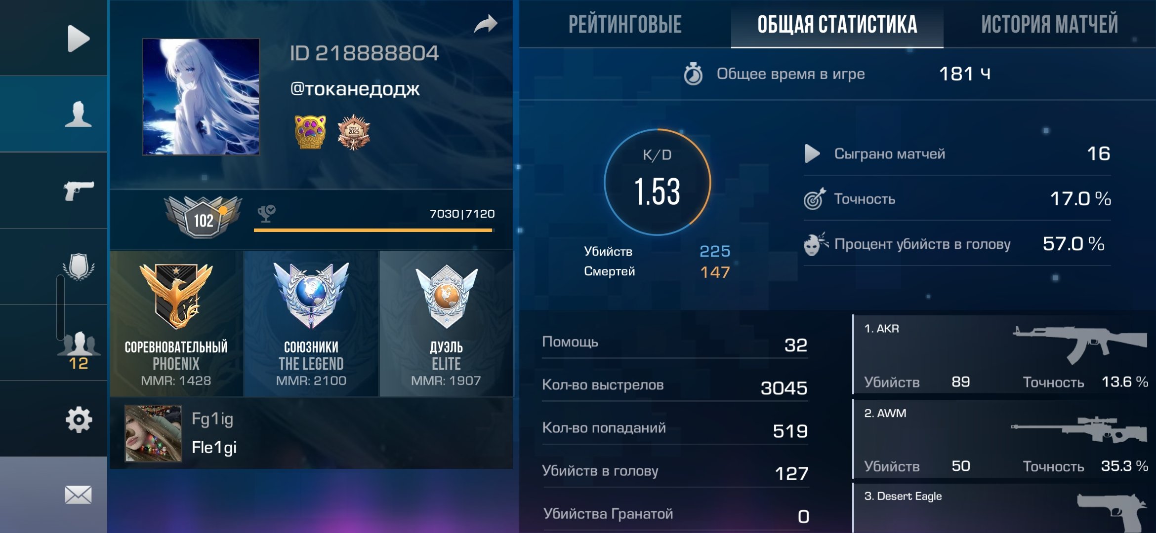 Звание: LegendКраткое описание: 💙102 LVL💙ЛЕГА 1,28КД+💙180+ ЧАСОВ💙АЙДИ 218888804💙ЛИДЕР В КЛАНЕ💙GMAIL.COM💙