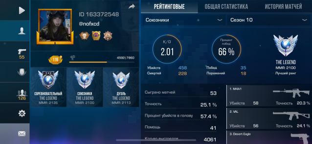 9 сезон [ легенда ] 10 сезон [ легенда ] режим — ММ / 660ч 10к киллов 3 медали до след 98%
