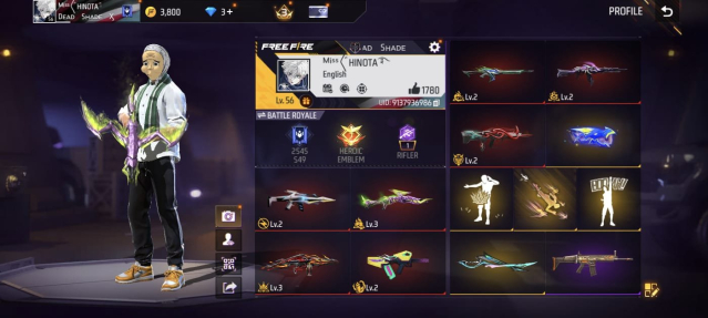 Краткое описание: 7 Evo Gun √ Nice Emote Collection √ 56 Level √ BD Server √ Google Account √ (Miss > HINOTA)