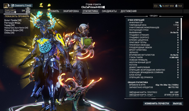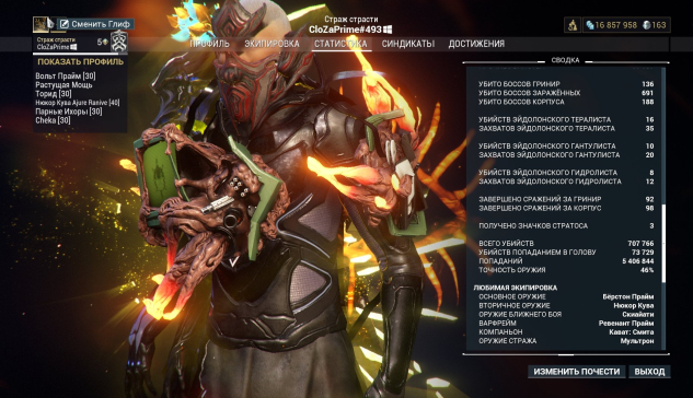 Подробное описание: Продам 5 легендарный ранг аккаунт в варфрейме, все прайм варфреймы есть, много уникальных пушек в том числе праймовских, есть торид с модом разлома, все планеты закрыты, большинство репутаций на планетах закрыты у синдикатов(кроме 2 самых новых), вся сюжетная ветка на данный момент выполнена с побочными заданиями, ну и много всего другого, так как это самый последний ранг существующий на данный момент в игре, времени ушло на игру и качание его очень много, продаю, потому что проблемы со здоровьем и устал от игры данной.