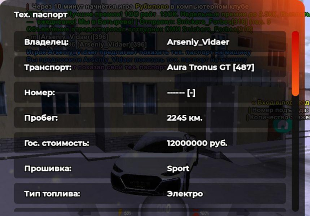 ⚡️ ПОЛНЫЙ ДОСТУП ⚡️ Сервер Novosibirsk (#34) Баланс 500к Машина Aura Tronus GT ⚡️ СМОТРИТЕ ОПИСАНИЕ ⚡️Машина: Other