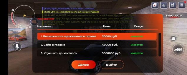 🚀 Гараж с 3/3 улучшениями, дает +6 доп слотов для авто, цена такого гаража около 8 000 000 рублей.