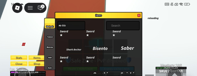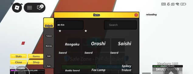 Сонг гитара, фулл тесто в2, перм тигр и лед, много мифических фруктов, в4 киборг и гуль, много мифического оружие, фулл год хумен, 2646 лвл, мифические аксессуары, донат скин, 2 фрукта в инвентаре и много чего ещё