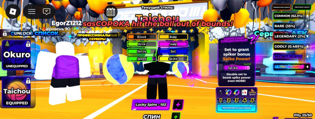 4 секретных стиля (✨The Twins⚡,💨Tsh🔥,💥Taichou✨,🤯OG HAKKA🤯), 2 способнгсти🔥 (redirection jump, 4косание),110+ 🤑lucky style spins,🤑150 lucky ability spins💥, много редких мячей,💲скин за робуксы+50 робуксов на аккаунте💲,🫨в укради брейнрот 3 этажа и много хороший брейнротов с доходом 20м+🤯