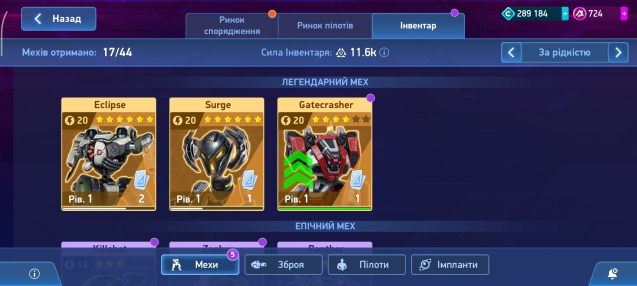 Краткое описание: Good account for low price inventory power 11,6k, power 5,3kПодробное описание: 3 legendary robots, 8 legendary weapons