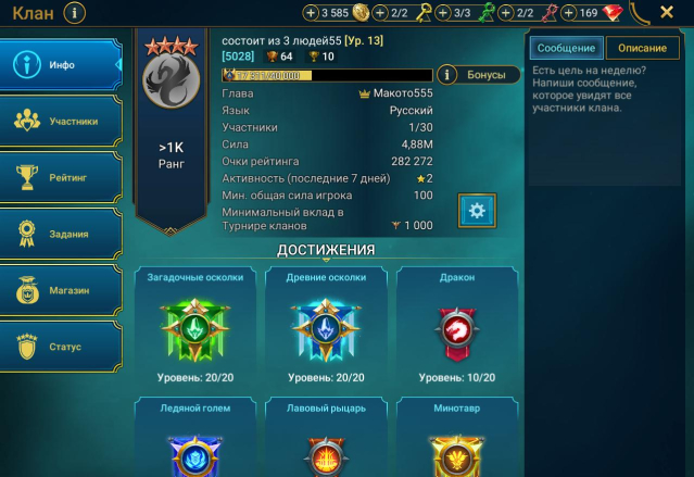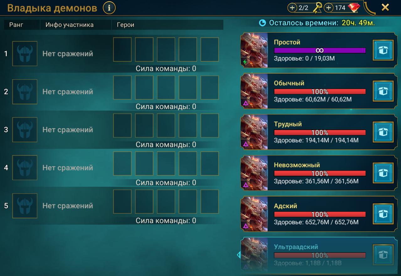 Уровень клана 13, владыка демонов открыт все, гидра 1-2, химера 1-3