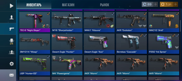 коллекция скинов (общая стоимость 200–300 голды).