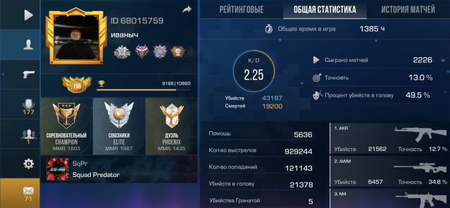 Подробное описание: Хороший аккаунт старый 2019 года нож и перчатки кд 2.25 хорошие звания в каждом сезоне с 1 сезона в игре классные медальки аккаунт только лично мой