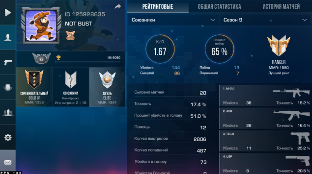Прошлый сезон (9 сезон): Ranger в напах и Gold 3 в дуэлях.