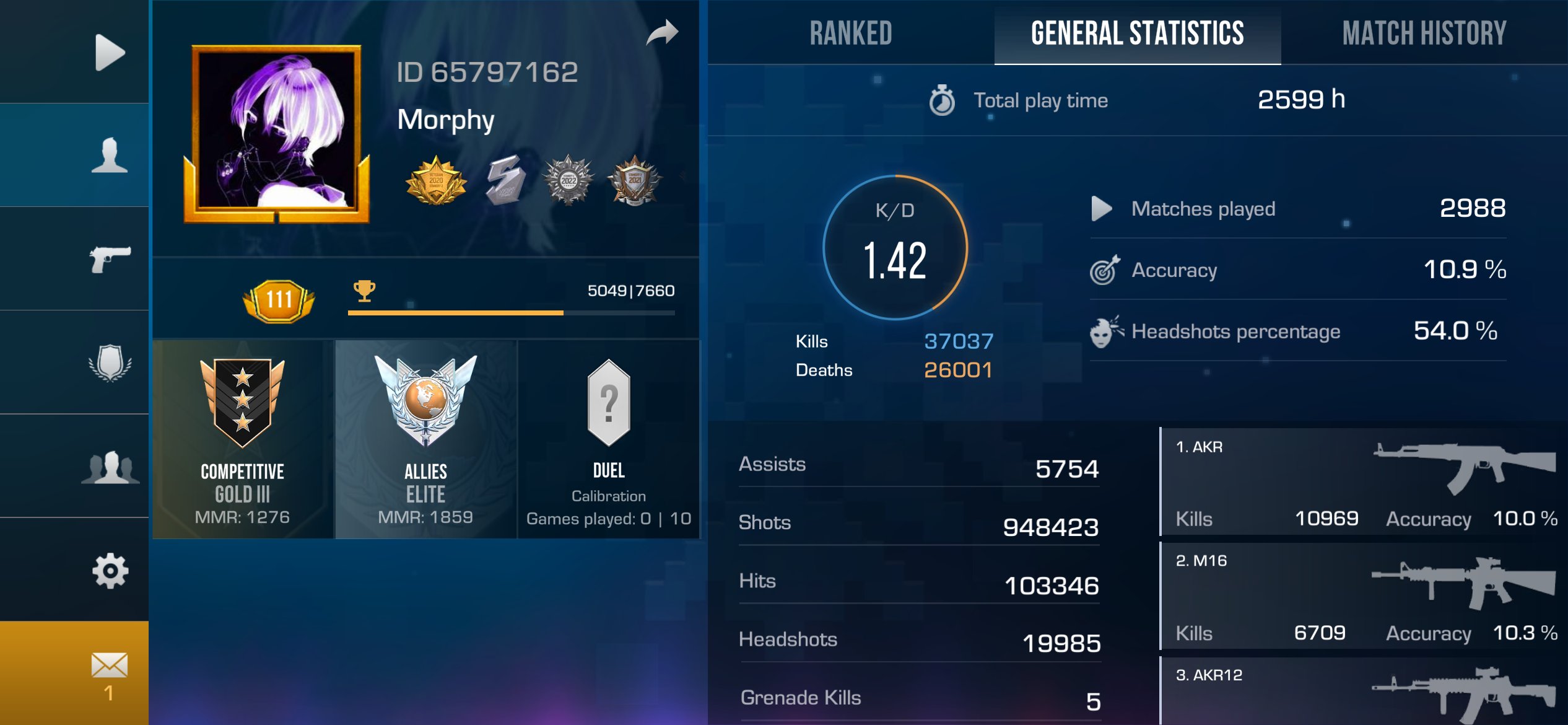 Звание: EliteКраткое описание: 🟥MEDAL «VETERAN 2020» GOLD🟥⏰2599+ Часов⏰🥶8 OLD Медалей🥶 ♥️БРЕЛКИ♥️ID: 💀65797162💀🔶ELITE🔶Инв≈80G+